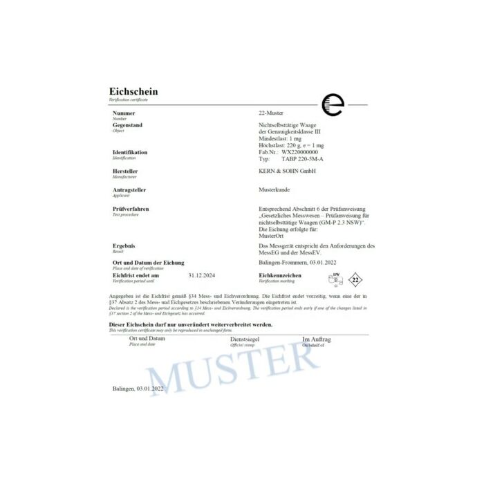Alleen te bestellen met een weegschaal waarbij het mogelijk is deze te ijken.