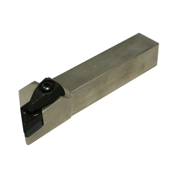 Dreh- u. Profilierwerkzeughalter mit rhombischem, negativem doppelseitigem Einsatz (55° Winkel) und starker Schneidkante. Die Doppelverriegelung sichert gute Steifigkeit und Spanabfluss in Schruppanwendungen. Außen-Drehwerkzeughalter für allgemeine Anwendungen, Schruppen, Halbbearbeitung und Endbearbeitung. Kopiermeißel 93°.