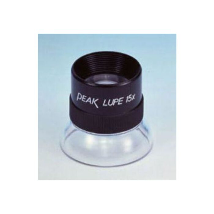 Peak Typ 1962-15x. Lupe mit beschichtete achromische Linse. Vergrößerung 15x. Mit Acrylkappe. Abmessung ø36x33mm.